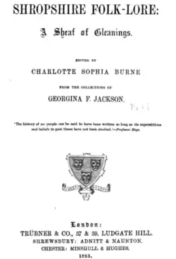 Jackson passed her notes on Shropshire folklore to her friend Charlotte Burne. Burne edited these and they were published in 1883, acknowledging Jackson's role in its creation.[1]