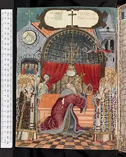 A Venetian nobleman Francesco Barozzi born in Herakleion commissioned Klontzas to create two illuminated manuscripts for Giacomo Foscarini. Foscarini was the administrator and tax collector of Crete. The manuscripts contain the Oracles of Leo the Wise. A third, more complex, leather-bound manuscript was completed during the 1590s. It contains 217 paper folios with over 400 miniature drawings. Klontzas' signature is at the end of the book. The textual frame is proved by the seventh-century Apocalypse of Pseudo-Methodius. It starts with the Expulsion from the Garden of Eden and ends with the Last Judgment. The codex features Biblical and prophetic texts ensconced with Byzantine and Ottoman history. The pictures stylistically resemble Venetian and Flemish icon paintings. Another lesser-known artist from Crete was Markos Bathas. He also completed a manuscript in a similar style.[8]