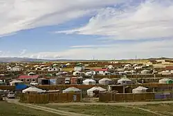 Small settlements, like sum centers, may consist almost exclusively of ger districts. Even in Mongolia's capital Ulaanbaatar, around 62% of the population live in such districts. However, only about 43% of the Ger district residents in Ulaanbaatar actually live in gers.[2] Some of the districts in Ulaanbaatar have existed for more than 100 years, for example the one around Gandan, but many of those farther away from the city centre are the result of recent migration and the high price of other housing in Ulaanbaatar.