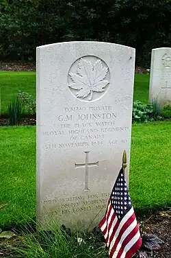 Johnston's remains are buried in the Heverlee War Cemetery in Belgium.[2]