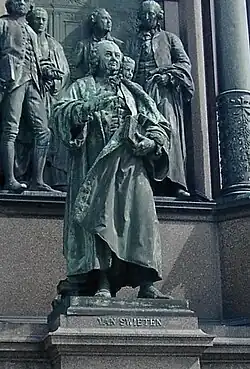In his new position he implemented a transformation of the Austrian health service and medical university education. He was the proposer of the main sanitary reform in the Habsburg monarchy, "Generale Normativum in Re Sanitatis", implemented by Maria Theresa in 1770.[19] He founded a botanical garden, a chemical laboratory and introduced clinical instruction. Since 1745 he was also librarian for Maria Theresa for what was then the Imperial Library.[20]