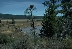 The watershed that drains into Gerber Reservoir covers 234 square miles (610 km2).[6] There are three primary vegetation zones that make up the watershed: coniferous forest, juniper woodlands, and shrub-steppe. There are also some meadow lands within the pine forest zone and in riparian areas along drainages that empty into the reservoir from the north and south. The watershed to the north, south, and west of the reservoir are pine forest. The area east of the reservoir is mostly juniper woodlands. The areas immediately surrounding the reservoir are shrub-steppe.[2][10]