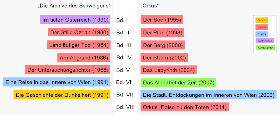 - Die Archive des Schweigens. Cycle of novels with the following parts: