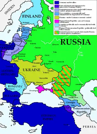 - Buffer states created in territory carved out of the western Russian Empire, such as Poland and the Baltic states, which would remain under German sovereignty