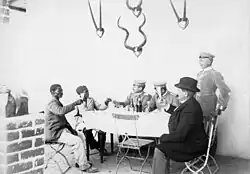 Although temperate zone cultivation flourished, the demise and often failure of tropical low-land enterprises contributed to changing Bismarck's view. He reluctantly acquiesced to pleas for help to deal with revolts and armed hostilities by often powerful rulers whose lucrative slaving activities seemed at risk. German native military forces initially engaged in dozens of punitive expeditions to apprehend and punish freedom fighters, at times with British assistance.[59] The author Charles Miller offers the theory that the Germans had the handicap of trying to colonize African areas inhabited by aggressive tribes,[60] whereas their colonial neighbors had more docile peoples to contend with. At that time, the German penchant for giving muscle priority over patience contributed to continued unrest. Several of the African colonies remained powder kegs throughout this phase (and beyond).[43]