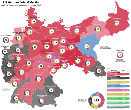 - ^ a b c "Das Deutsche Reich. Wahl zur Nationalversammlung 1919" [The German Reich. Election to the National Assembly 1919]. gonschior.de (in German). Retrieved 31 January 2025.