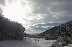 The recreation area covers an area of 41.40.52 ha, where most of the area is coated with forests of oak and beech while the rest includes meadows, roads and other infrastructure. This area starts from Germia's pool and stretches to the beginning of the ski lift, including meadows, children's playground, sports terrains and inns. The meadow, which begins at the entrance of the area is surrounded by forests of oak and beech and it is regulated as a picnic spot. The surface of it was reduced after the regulation of the parking lots. Three restaurants were built after the war in this area.[1]