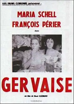 Gervaise [ʒɛʁ.vɛz] is a 1956 French historical drama film directed by René Clément based on the 1877 novel L'Assommoir by Émile Zola. It depicts a working-class woman in the mid-nineteenth century (played by Maria Schell) trying to cope with the descent of her husband (played by François Périer) into alcoholism.