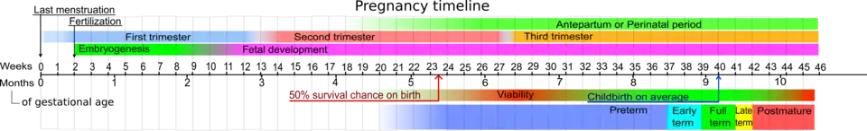 | Second trimester ends | 26 weeks | 24 weeks | 23 weeks |