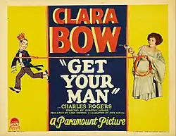 Get Your Man is an American silent romantic comedy film produced by Paramount Famous Lasky Corporation and released in 1927. The silent film was directed by Dorothy Arzner, and stars Clara Bow, Charles "Buddy" Rogers, and Josef Swickard. The Library of Congress holds an incomplete print of this film, missing two out of six reels.[1][2][3][4] Paramount did not renew this film's copyright in 1955, so the film is now in the public domain.