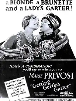 Getting Gertie's Garter is a 1927 American silent comedy film directed by E. Mason Hopper and starring Marie Prevost, Charles Ray, and Sally Rand.[1][2] It is an adaptation of the 1921 play of the same name by Wilson Collison and Avery Hopwood.[3]
