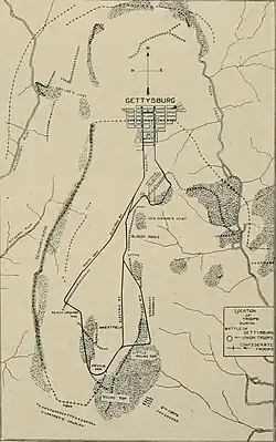 - ^ a b Map of the Battle Field of Gettysburg (Map). Cartography by Gettysburg National Park Commission (Nicholson, John P; Cope, Emmor; Hammond, Schuyler A). New York: Julius Bien & Co. Lith. 1904. Archived from the original on December 5, 2012. Retrieved January 19, 2011.