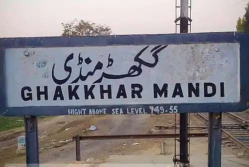 Ghakhar Mandi Railway Station (Urdu and Punjabi: گکھڑ منڈی ریلوے اسٹیشن) is located in Ghakhar Mandi village, Gujranwala district of Punjab province, Pakistan.