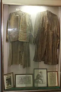 Mirza Abdullah Baig (Ghalib's father) married Izzat-ut-Nisa Begum, an ethnic Kashmiri,[8] and then lived at the house of his father-in-law. He was employed first by the Nawab of Lucknow and then the Nizam of Hyderabad. He died in a battle in 1803 in Alwar and was buried at Rajgarh, Alwar,[9] when Ghalib was a little over 5 years old. He was then raised by his Uncle Mirza Nasrullah Baig Khan, but in 1806, Nasrullah fell off an elephant and died from related injuries.[10]
