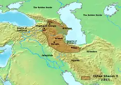 His coins have been minted in Mardin (1356),[4] Qom (1357),[5] Soltaniyeh, Maragha, Ray,[6] Ani, Barda, Ganja, Khoy, Mamaqan, Nakhchivan, Sharur, Tabriz, Tbilisi, Urmia and others.[7] The coins minted in the name of Ghazan II in Tabriz and Tiflis followed the designs of the neighbouring Golden Horde, while those minted in Maragha followed traditional Ilkhanid designs.[7]