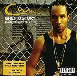 "Ghetto Story" is a dancehall/ragga single performed by dancehall artist Baby Cham. It is the first single to be released from his album of the same name. The song is most known for its reggae fusion remix called "Ghetto Story Chapter 2" featuring American R&B singer Alicia Keys. The single peaked at number 77 on the Billboard Hot 100, number 15 on Billboard's Hot R&B/Hip-Hop Singles chart, and number 13 on the Billboard Rap Tracks chart. It received heavy airplay on MTV2 and BET, and some airplay on Canada's MuchMusic. The song is about growing up in the ghetto and how it was for Cham in his younger years. The video entered BET's 106 & Park at number 9 before peaking at number 5, making it one of the very few reggae videos to reach the top 5 on that countdown. Another remix features singer Akon. Rapper Lil Wayne has freestyled over the instrumental.