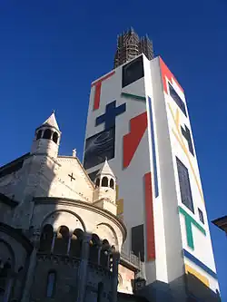 The tower underwent a restoration started in December 2007. At the beginning it was said it would be finished by the year 2010, but restoration work lasted till September 2011. During the work, the scaffolding was hidden behind an artistic screen painted by the Italian sculptor Mimmo Paladino. This choice has caused perplexity in the town, given the high cost of the operation and the very idea of it.