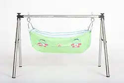A ghodiyu is an infant cradle formed of a wooden frame and a cloth hammock (jholi).[1]
