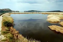 Gialova Lagoon (Greek: Γιάλοβα, pronounced [ˈʝalova]) – also known as Divari, from the Latin word vivarium, meaning "fishery" – is a brackish body of water in the municipality of Pylos-Nestor, Greece, about 8 kilometres (5.0 mi) north of Pylos. The lagoon, together with Voidokilia Bay, belongs to a unique ecosystem which constitutes a protected zone, in terms of both natural and cultural heritage. From the natural point of view, the entire area, together with Navarino Bay and the island of Sphacteria, forms part of the network Natura 2000 and has been named a Zone of Special Protection, with code GR2550008, and an Area of EU Importance, with code GR2550004.