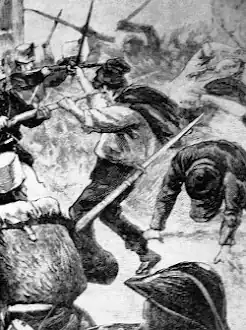The Giardinello massacre was the first in a series of bloody incidents that would lead up to the proclamation of a state of siege by Prime minister Francesco Crispi on January 4, 1894, that would crack down heavily on the Fasci.[5] On December 17, 1893, many people were wounded when troops fired on a manifestation in Monreale. Another 11 protestors were killed in Lercara Friddi on December 25.[6] On January 1, 1894, 20 people were killed and many wounded in Gibellina and Pietraperzia. On January 2, there were two dead in Belmonte Mezzagno and the next day 18 dead and many wounded in Marineo.[7][8] Two days after, on January 5, thirteen dead and many wounded closed the series in Santa Caterina.[9]