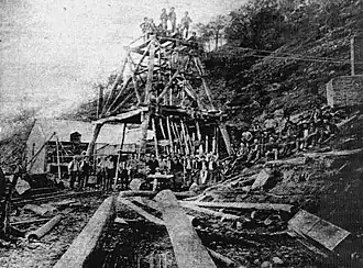 The mine was bought by English interests, with capital of £300,000, in 1896, and greatly expanded. £500,000 worth of gold was won before the grades declined and the company ceased mining,[8] in 1901. The mine then continued to be worked, on a small scale, by tribute miners. The company resumed operations in December 1907,[9] but the mine was closed by 1916.
