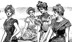 Taking part in the suffrage movement was something more associated with the New Woman, another cultural image of women that emerged around the same time as the Gibson Girl. As a more popular version of the New Woman, the Gibson Girl both undermined and sanctioned some women's desires for progressive sociopolitical change.[4] The New Woman was the more disconcerting of the two images at the time as she was seen as an example of change and disruption within the old patterns of social order, asking for the right to equal educational and work opportunities as well as progressive reform, sexual freedom and suffrage. Whilst the Gibson Girl took on many characteristics of the New Woman, she did so without involving herself in politics and thus did not appear to contemporaries at the time to be usurping traditionally masculine roles as the New Woman was deemed to. She therefore managed to stay within the boundaries of feminine roles without too much transgression.