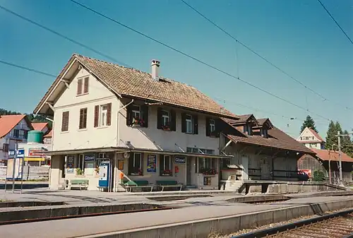 Gibswil railway station is a railway station in the Swiss canton of Zurich. The station is situated in the municipality of Fischenthal (Töss Valley) and takes its name from the nearby village of Gibswil. It is located on the Tösstalbahn between Winterthur and Rüti ZH.