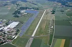 Giebelstadt Airport (IATA: GHF, ICAO: EDQG) is a general aviation airport located in Germany, southwest of Giebelstadt in Bavaria. The airport is the only public-use airfield in the Würzburg region. It offers private aircraft and charter operations. It was known as Giebelstadt Army Airfield before 2006.