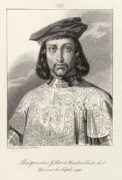 Gilbert of Bourbon-Montpensier (1443 – 15 October 1496, Pozzuoli), Count of Montpensier, was a member of the House of Bourbon. He was the son of Louis I, Count of Montpensier and Gabrielle de La Tour d'Auvergne, Count of Montpensier and Dauphin d'Auvergne.[1] He was appointed to the Order of Saint Michael by King Charles VIII of France in October 1483.[2]