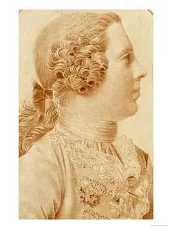 Hussey went back to England in 1737 to reveal his new theories on art, but they received little attention. To make ends meet he again took to portraiture and was able to include the numismatist Matthew Duane and the Duke of Northumberland amongst his clientele in 1742. The Duke was said to have offered Hussey a room at his house and to also have been willing to fund a servant for him as long as Hussey directed his efforts at the Duke's interest. However Hussey is said to have refused the offer as he was not to be given a Catholic priest as well.[8] Hussey created a third set of drawings of "Bonnie Prince Charlie" in 1742 although he is thought to have based this on a bust of the prince.[1] Over the next twenty years, Hussey was disappointed to find that his artistic theories received very little attention, and in 1768 he gave up painting entirely. He took to gardening after he inherited the family's property at Marnhull, following the death of his elder brother.[3] In 1787 Hussey's nephew, John Rowe of Beaston House in the parish of Broad Hempston, Devon, in whose house Hussey had been living for several years,[9] changed his name to Hussey and inherited Hussey's wealth and property.[4]