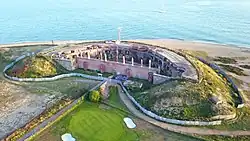 The Phoenix Trust proposed to convert the fort to apartments in 1999, but pulled out in 2001. A similar redevelopment scheme was posited by Try Homes from 2003 to 2006, and Assett Hawk from 2007 to 2012. The latter did engage in some work on the site clearing overgrowth in 2012, but none of the schemes came to fruition.[13] In 2016, the fort was earmarked for restoration and conversion to modern apartments by Fort Gilkicker Developments Ltd, and work began on site with the erection of a fence, however these plans were again dropped in 2018 due to financial issues,[14] and the fort was put on sale again in November 2019 with a guide price of 5 to 5.5 million pounds.[15][16]