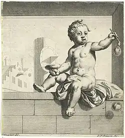 He is also said to have studied with Gerard de Lairesse. He collaborated with de Lairesse on publications such as de Lairesse's Het groot schilderboeck ("Great Book of Painting"), published in 1710 for which he made the title page and various illustrations. He worked as an assistant in the workshop of the engraver and publisher Pieter van Gunst. He made for the sheet music publisher Estienne Roger various title pages for musical publications.[2] An example is the title page of Arcangelo Corelli's Concerti Grossi published by Roger in Amsterdam in 1714. The print represents St. Cecilia Playing a Lute and was made after a design by the Italian painter Francesco Trevisani.[5]