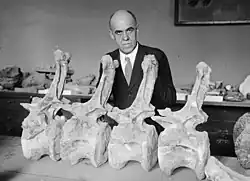 Once it had arrived back to New York, the Mongolian material was given to Barnum Brown to study. Brown was renowned for his field collection of dinosaurs, but he was too busy to attend the Asian expeditions. He did extensive work on the material and had prepared names for the new species, but for unknown reasons he ceased work on the project before its completion. Instead, the fossils were sent to the Smithsonian and would be described and named as new species by Charles W. Gilmore. The Smithsonian had little in terms of a dinosaur fossil collection and Gilmore as such was more reliant on the literature than first hand comparisons in his studies. Despite this, his work in the field is considered to be of high quality.[1] He published his findings in 1933, describing both hadrosaurs as well as several other dinosaurs. One of the hadrosaurs, then thought to be a lambeosaur, was the novel genus Bactrosaurus. The second, known from at least four individuals and thought to be a hadrosaurine, was named as a new species of Mandschurosaurus, M. mongoliensis. This choice was made tentatively; Gilmore was mindful of the possibility his species may later require its own genus, but did not currently feel there was sufficient difference from M. amurensis for this.[3] Gilmore's description of the species' anatomy was rather brief and would prove inadequate to understanding the taxon decades later; he provided no clear diagnosis (a list of what traits establish a species as different from its relatives). Another issue caused by Gilmore's work was that all the material, from all the individuals, was catalogued under a singular specimen number. Later palaeontologists thus had to recatalogue all of the elements under more modern standards.[4]