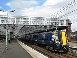 Paisley Gilmour Street railway station is the largest of the four stations serving the town of Paisley, Renfrewshire, Scotland (the others being Paisley St. James, Paisley Canal and Hawkhead), and acts as the town's principal railway station and also serves Glasgow Airport with easy walking and cycling access as well as a bus service from the station to the terminal. The station is managed by ScotRail and serves the Ayrshire Coast Line and Inverclyde Line, 7+1⁄4 miles (11.7 km) west of Glasgow Central. The station is protected as a category B listed building.[3]