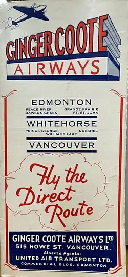 - ^ Ginger Coote Airways. (2025 April 29). Timetable from the Commercial Airlines Collection at The Museum of Flight (Seattle, Wash.).