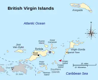 ![]() The location of Ginger Island within the British Virgin Islands | |