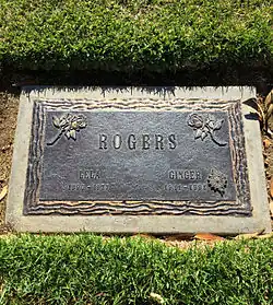 Rogers spent winters in Rancho Mirage and summers in Medford, Oregon. She died at her Rancho Mirage home on April 25, 1995, from a heart attack at the age of 83.[41] She was cremated and her ashes interred with her mother Lela Emogene in Oakwood Memorial Park Cemetery in Chatsworth, California.[42]