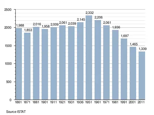 - ^ "Superficie di Comuni Province e Regioni italiane al 9 ottobre 2011". Italian National Institute of Statistics. Retrieved 16 March 2019.