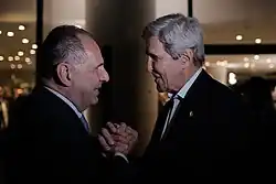 On 28 February 2025, Gerapetritis met for the first time with new U.S. Secretary of State, Marco Rubio, at the State Department. Their meeting occurred just hours after the Trump–Zelenskyy Oval Office meeting, which Gerapetritis described as a "public confrontation". In their meeting, Rubio and Gerapetritis discussed the strategic relationship between the two countries, and also the importance of confronting illegal migration. Gerapetritis also asserted that regardless of the public confrontation between Trump and Zelenskyy, Europe remained obligated to "upgrade its defense infrastructure", but also said that the support of the United States was "necessary".[29] They also discussed the leadership of Greece in regional energy projects and the prospect of future cooperation.[30] Rubio and Gerapetritis also discussed foreign affairs including the war in Ukraine and also the Middle East, as well as opportunities to strengthen bilateral relations.[31]