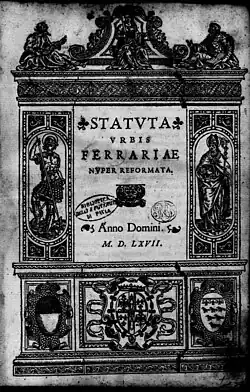 - Statuta urbis Ferrariae nuper reformata (in Latin). Ferrara: Francesco Rossi. 1567.