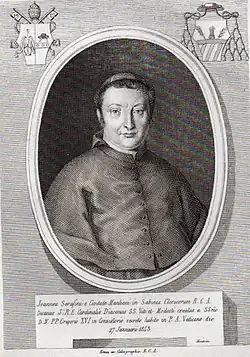 Giovanni Serafini (15 October 1786 - 1 February 1855) was an Italian Cardinal. He was the Cardinal-Deacon of Santi Vito, Modesto e Crescenzio from 1843 to 1846 and then the Cardinal-Deacon of Santa Maria in Cosmedin from 1846 until his death in 1855.