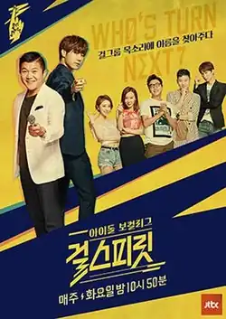 Girl Spirit (Korean: 걸스피릿) is a South Korean reality television singing competition that premiered on cable network JTBC on July 19, 2016. The aim of the show is to highlight the talents of the vocalists of twelve lesser-known girl groups that debuted in recent years.[1] It airs every Tuesday at 22:50 (KST).[2]