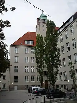 The school is located in the ancient borough of Schwabing in the Northwestern part of the city opposite the Elisabethmarkt and the Berufsschule für KfZ Mechanik (Municipal Vocational School for Vehicle Mechanics).