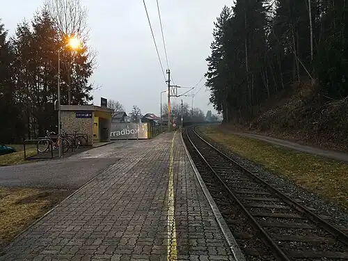 Gisingen railway station is a railway station in the Gisingen district of the town of Feldkirch in the westernmost Austrian Federal State of Vorarlberg. The station is located on the Feldkirch–Buchs railway line and is served by regional trains only.