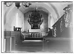 The earliest existing historical records of the church date back to 1309, but the church was not new that year. The church was likely built in the 12th century, but exact dates of its construction are not known. The church was originally a family chapel for the noble Giske family which owned the Giske Estate. The original building consisted of a rectangular 12.3-by-8.8-metre (40 ft × 29 ft) nave and a 7.6-by-6.2-metre (25 ft × 20 ft) chancel, but it has been refurbished several times over the centuries. After the Protestant Reformation, the church fell into disuse and disrepair until 1756 when the Estate was purchased and the new owner, Hans Holtermann. Holtermann ordered the extensive renovation of the church soon after. Most of the interior today can be dated back to this renovation, carved by the local craftsman Jakob Sørensøn Giskegaard (1734–1827). The church was again renovated in the 1860s where it received new, larger windows and a new entrance to the choir for the priest to use.[1][4][5]