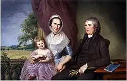 Born April 23, 1730 or 1735 to Thomas Gittings at Gittins Choice. A farmer and real estate speculator, he signed the 1775 Declaration of the Association of the Freemen of Maryland at the Annapolis Convention (Assembly of Freeman), which functioned as a provisional government in the early days leading up to the Revolutionary War. With the commencement of hostilities, in May 1776, he was Captain of the Gunpowder Upper Hundred of Baltimore County Militia, and by August 1777 had risen to the rank of Lieutenant Colonel, thereafter known as the "Colonel".[9] In 1789, James was a member of the Maryland General Assembly.[13] He was one of four Baltimore County opponents to the Convention to Ratify the Federal Constitution, April 21–29, 1788.[14] He married the daughter of George Buchanan (1696–1750), one of the founders of Baltimore City, and owner of Druid Hill. By 1800 he has acquired over 2,000 acres and 50 slaves, making him the largest slaveholder in the Long Green Valley.[3] He also owned property in Baltimore Town including in the Fells Point area. He died February 22, 1823, age 92, with 31 slaves, and 400 acres the remainder land previously given to his sons.[9] He had two sons, Richard Johnston Gittings (1763–1830) and James Gittings, Jr. (1770–1820). The two brothers married two sisters, Mary Sterett (1772–1847) and Harriet Sterett (1775–1822) respectively, the daughters of John Sterett.[10][11][15]