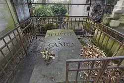 During a trip to Saint Petersburg, Russia, while traveling by train with her family, Grisi was involved in an accident after having crossed the border into Germany. She was taken to a hotel in Berlin, where she spent her last days under the care of a Dr. Isabell. She died there on 29 November 1869, aged 58. Her husband took her body to Paris, where she was buried at Père Lachaise Cemetery. Her tomb is marked with a plain white stone with the inscription "Juliette de Candia".[13]