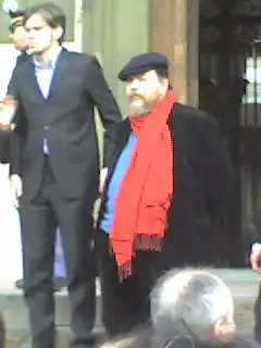 Ferrara came from a family of communists; his father was a senator for the PCI, and the two would remain close, even though his father did not share his rightward shift in the 1980s and 1990s. As the son of a PCI senator, Ferrara accompanied his father to Moscow in 1954, when he was 2, for the reportage on the death of Joseph Stalin that his father to wrote for l'Unità.[98] At 17, he took part in the protest demonstration against the police who had guarded the Faculty of Architecture of the Sapienza University of Rome, which sparked the Battle of Valle Giulia, one of the first demonstrations of the Italian 1968 movement.[99] Ferrara was active in the PCI during his twenties. In the early 1970s, at the age of 21, he was sent by the PCI to Turin, where he was entrusted with the role of party factory manager in Turin.[100] In 1982, he broke with the party, rejected communism in controversy with the leadership of the PCI, and became vocal as an ex-PCI member within the PSI and dedicated himself to journalism; in this capacity, he supported the PSI and in particular Craxi as its secretary.[22] In 1992, when the Tangentopoli scandal broke out and Craxi was forced to leave the party secretariat, he sided with the garantista positions, strongly criticizing the actions of the magistrates.[39] Starting in 1994, he supported Berlusconi, first as a minister and then as a journalist; he defended him from the many controversies surrounding Berlusconi, accusing the centre-left coalition of trying to defeat Berlusconi through a politicized magistrature after failing to defeat him politically trough elections and the former libertine sessantottini of becoming moralistic voyeurs. He said: "A republic of virtue, puritanical in its ideology and its functioning is the opposite of a liberal and tolerant republic."[101][102] Influenced by the political philosopher Leo Strauss, Ferrara initially gravitated toward socialism but later moved toward social conservatism. As a member of the PSI, he endorsed Franco Carraro as mayor of Rome.[103] As a member of Forza Italia, he joined the first Berlusconi government in 1994,[35][nb 7] and founded the newspaper Il Foglio in 1996.[35] An economic liberal and supporter of the free market, Ferrara is often criticized because Il Foglio receives public funds.[104][105]