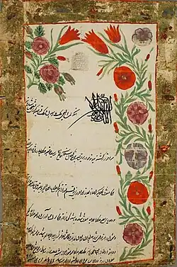 In 1734 the Ottoman fortunes began to reverse in the Caucasus as the resurgent Iranians under Tahmasp Qoli Khan (the future shah Nader) gained an upper hand. Givi Amilakhvari quickly switched the side.[4] He seized Gori from the Ottoman garrison in a surprise attack, rode to join Nader before Ganja and helped expel the Ottoman forces from Tbilisi.[3] As Nader's ambitions grew, the Iranian hegemony began to ruin the country's economy. Heavy taxes were levied by the governor of Kartli, Kilij Ali-Khan (Khanjal),[5] for the costs of the shah's Indian campaigns, soldiers were conscripted and noble hostages were sent to Iran. Amilakhvari was one of those Georgian nobles who were taken as hostages rather than as volunteers along the road to Nader's camp at Kandahar in 1735. Givi Amilakhvari managed to escape and took to the hills,[3] whence he joined Shanshe, Duke of the Ksani and Prince Vakhushti Abashidze in an anti-Iranian insurrection. The turmoil disrupted betrothal of Givi's daughter Tamar with the Mukhranian prince Teimuraz (eventually Catholicos Anton I of Georgia), nephew of ex-king Vakhtang VI. The girl was carried off by the Iranian soldiers during a wedding ceremony at the church, forcing the 16-year-old Teimuraz to seek refuge at a monastery. Amilakhvari himself was soon captured and forced to fight in the Iranian ranks in India. An able fighter, Amilakhvari was restored to favor with Nader Shah, who sent him back to Georgia to counter the irreconcilable duke Shanshe of Ksani. Shanshe's use of Dagestani and Turkish mercenaries deprived him of popular support and the rebellious duke was easily defeated. Givi Amilakhvari was rewarded with Shanshe's fief of Ksani.[1][3]