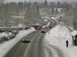 Farming later decreased significantly, and the periphery of the farmland was soon built up with housing. This development was spurred by the creation of the Kolsås Line light rail.[4] The farm still exists, but in 2009 politicians agreed to allow housebuilding on much of the remaining soil.[5]